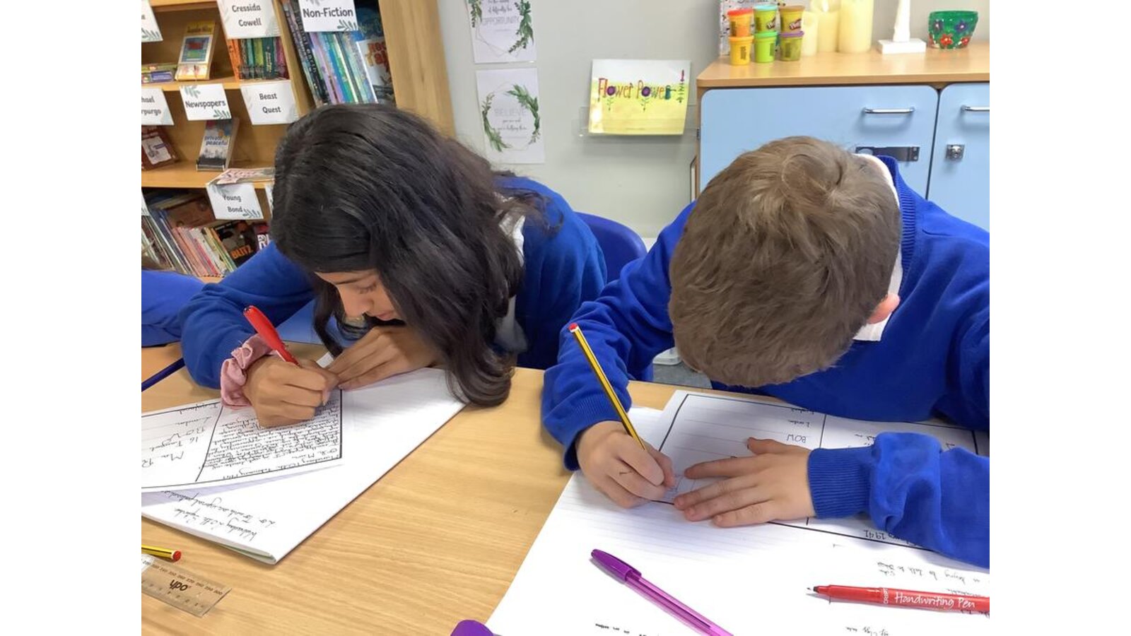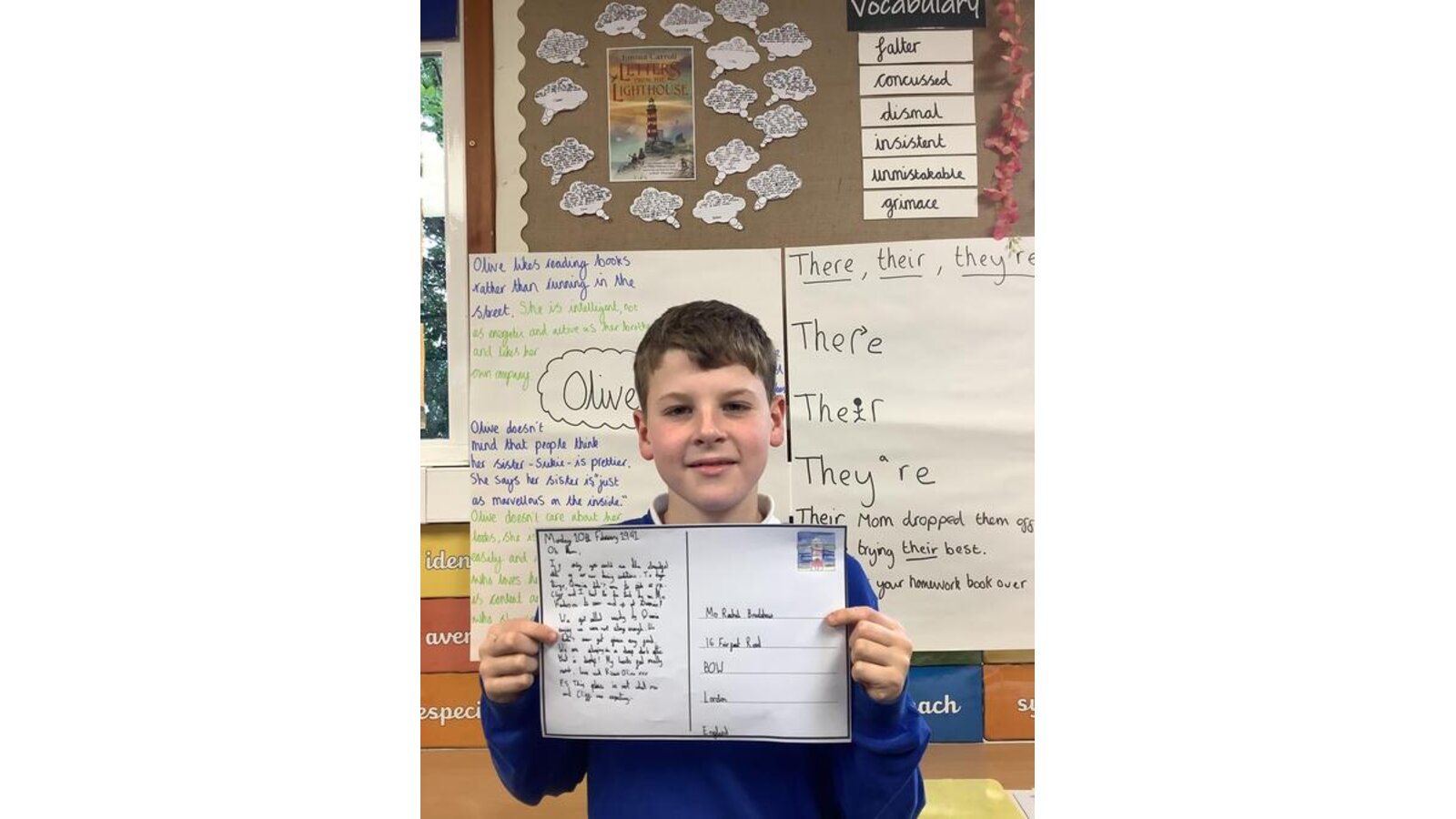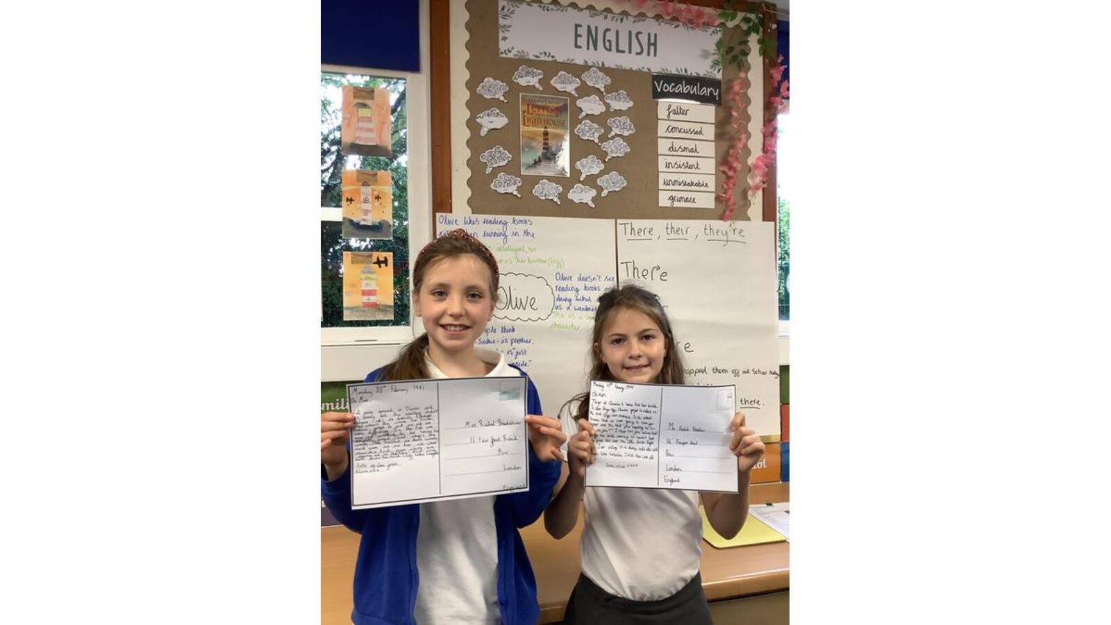 In English this week, after reading Chapter Six of Letters from the Lighthouse, Class Three got into character and re-wrote Olive’s postcard home truthfully. They used an informal tone and included 1940’s vocabulary too!