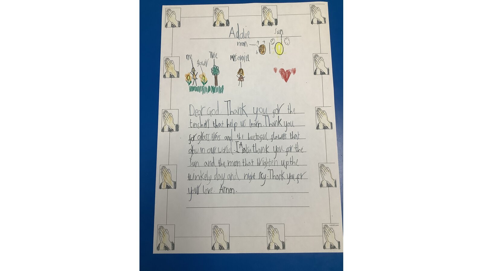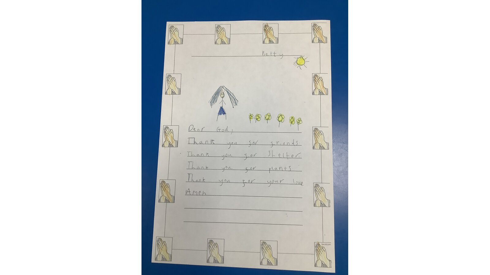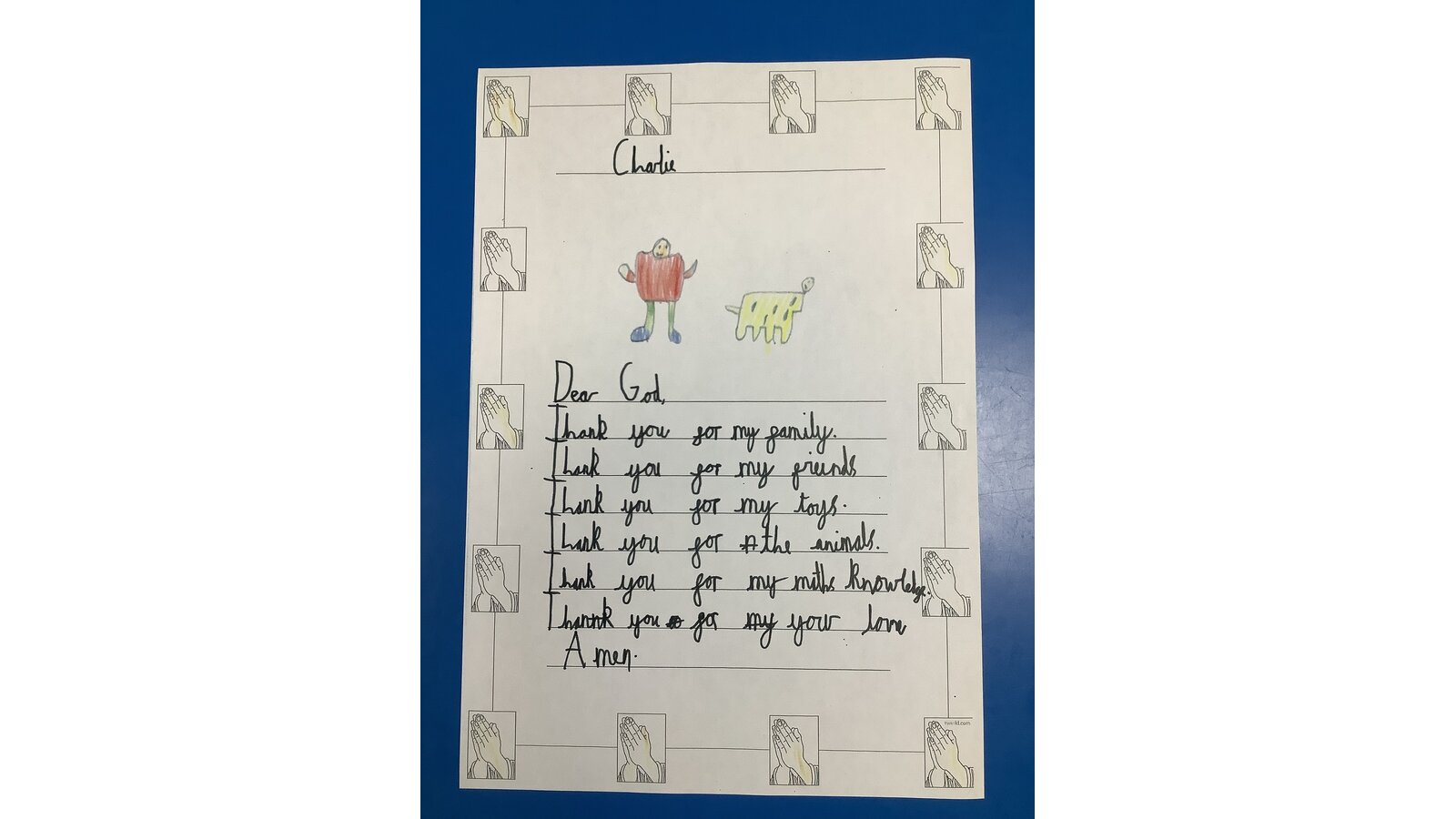 17 May 2024 Sarah Orgill Class 1 In RE we have been thinking about all the things we are thankful for. We created our own prayers. Previous Next class 1 RE
