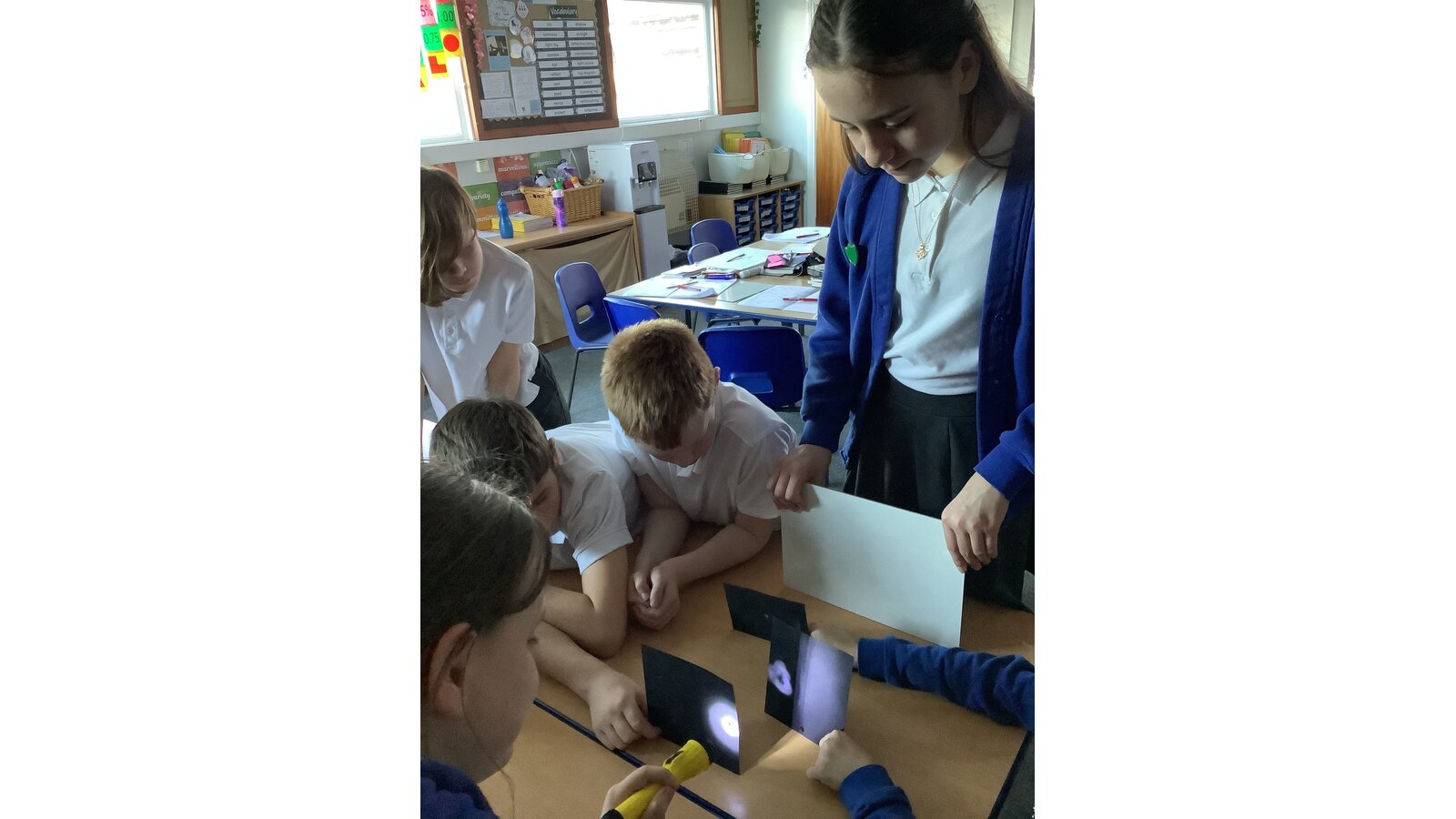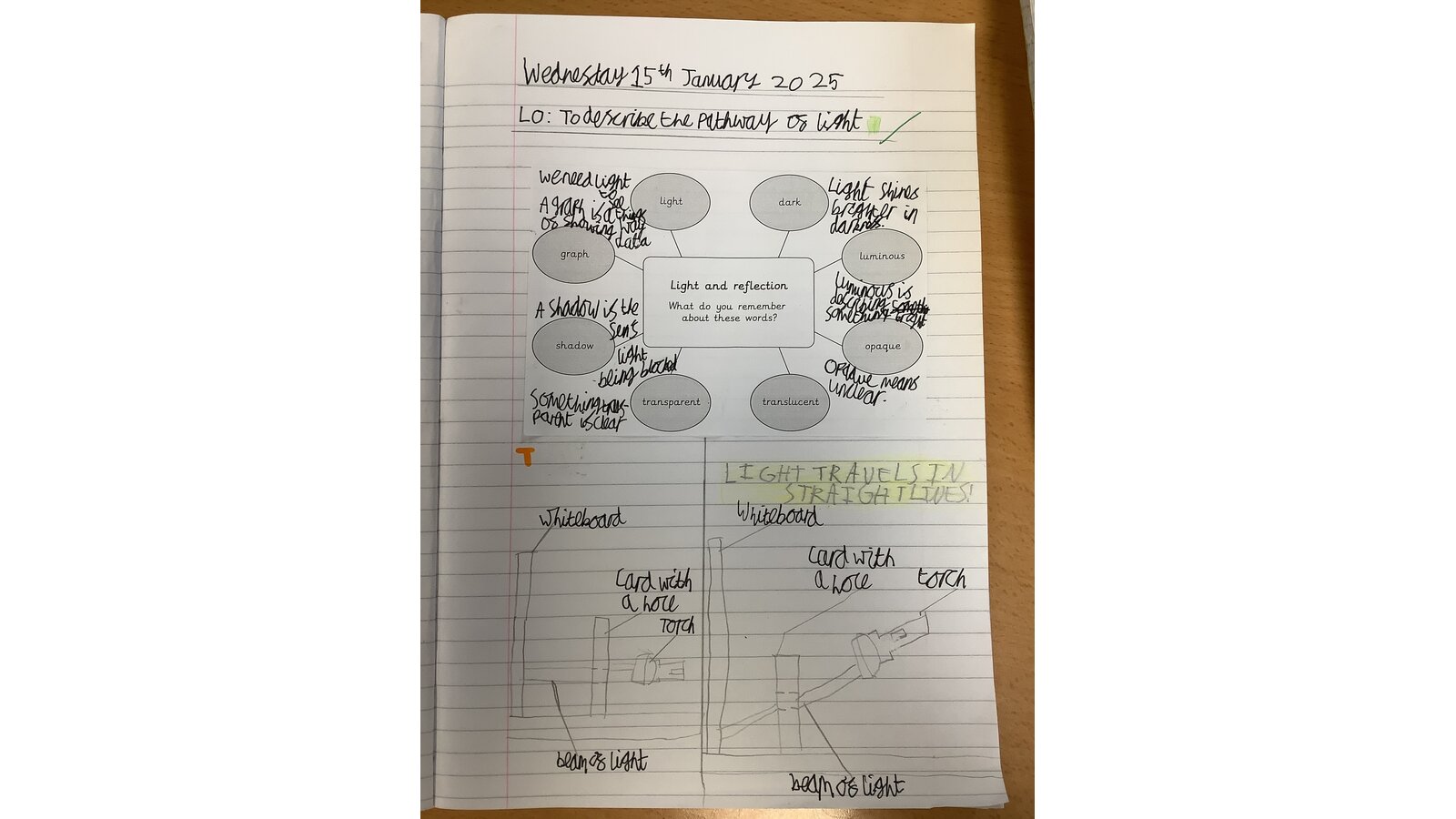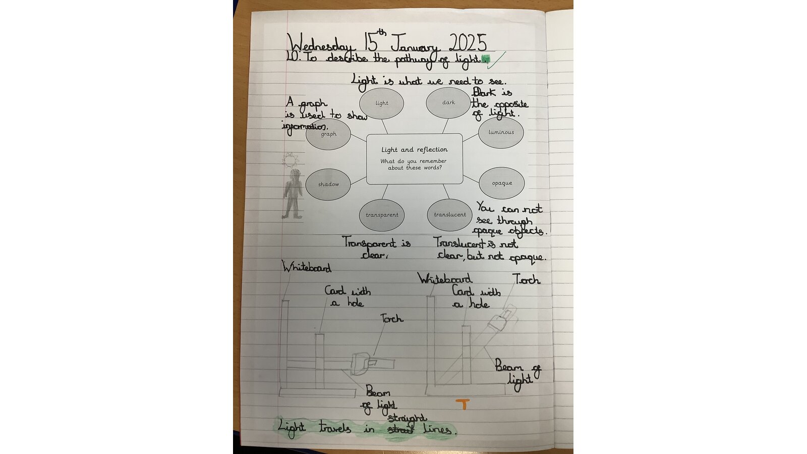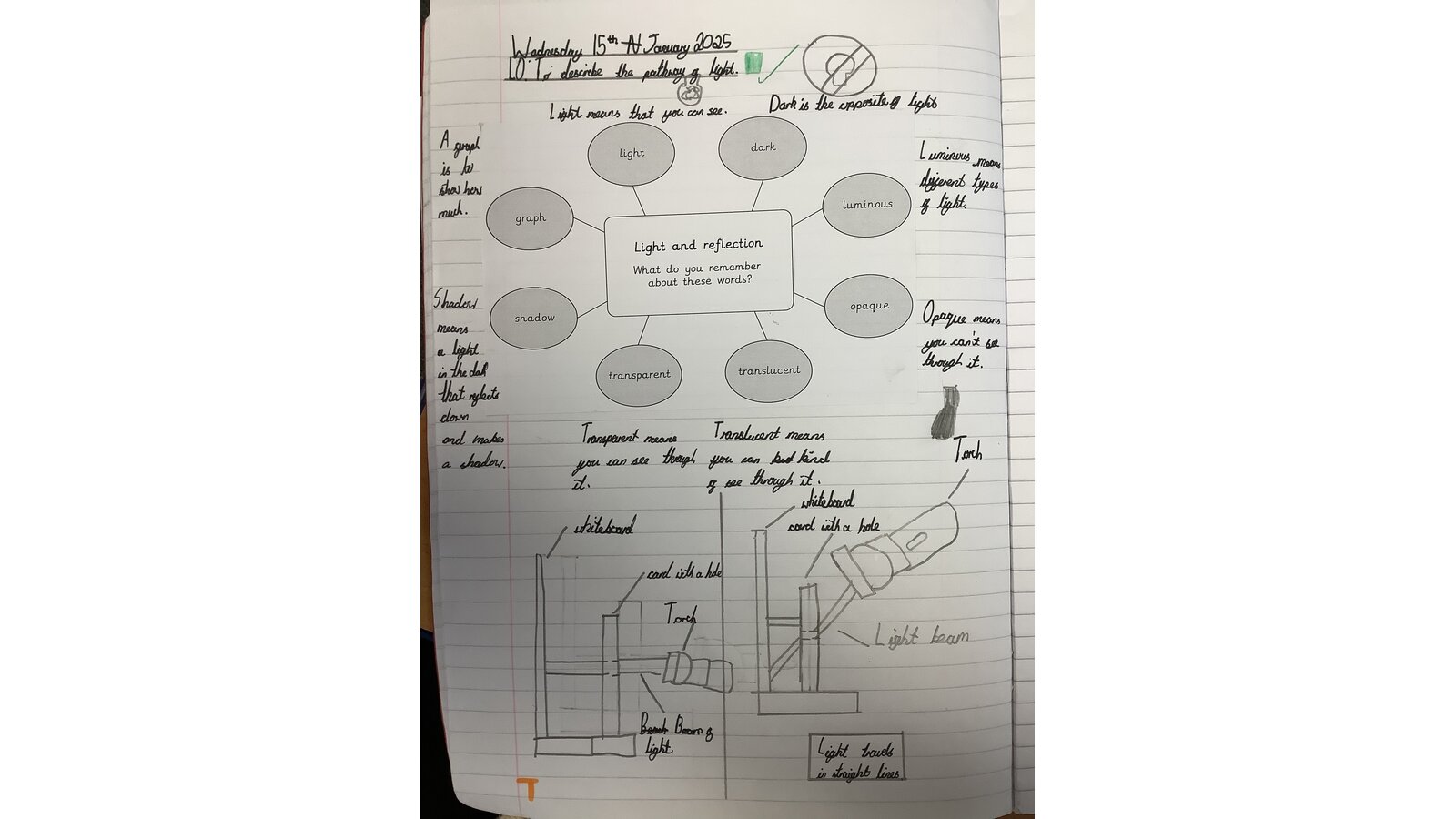 In Science this week, Class Three compared light sources, made observations and used evidence to form conclusions. We learned that a light source is something that gives out light and named natural and artificial sources of light, noting similarities and differences. The children worked collaboratively to investigate if light can bend and from their observations, concluded that light travels in straight lines!