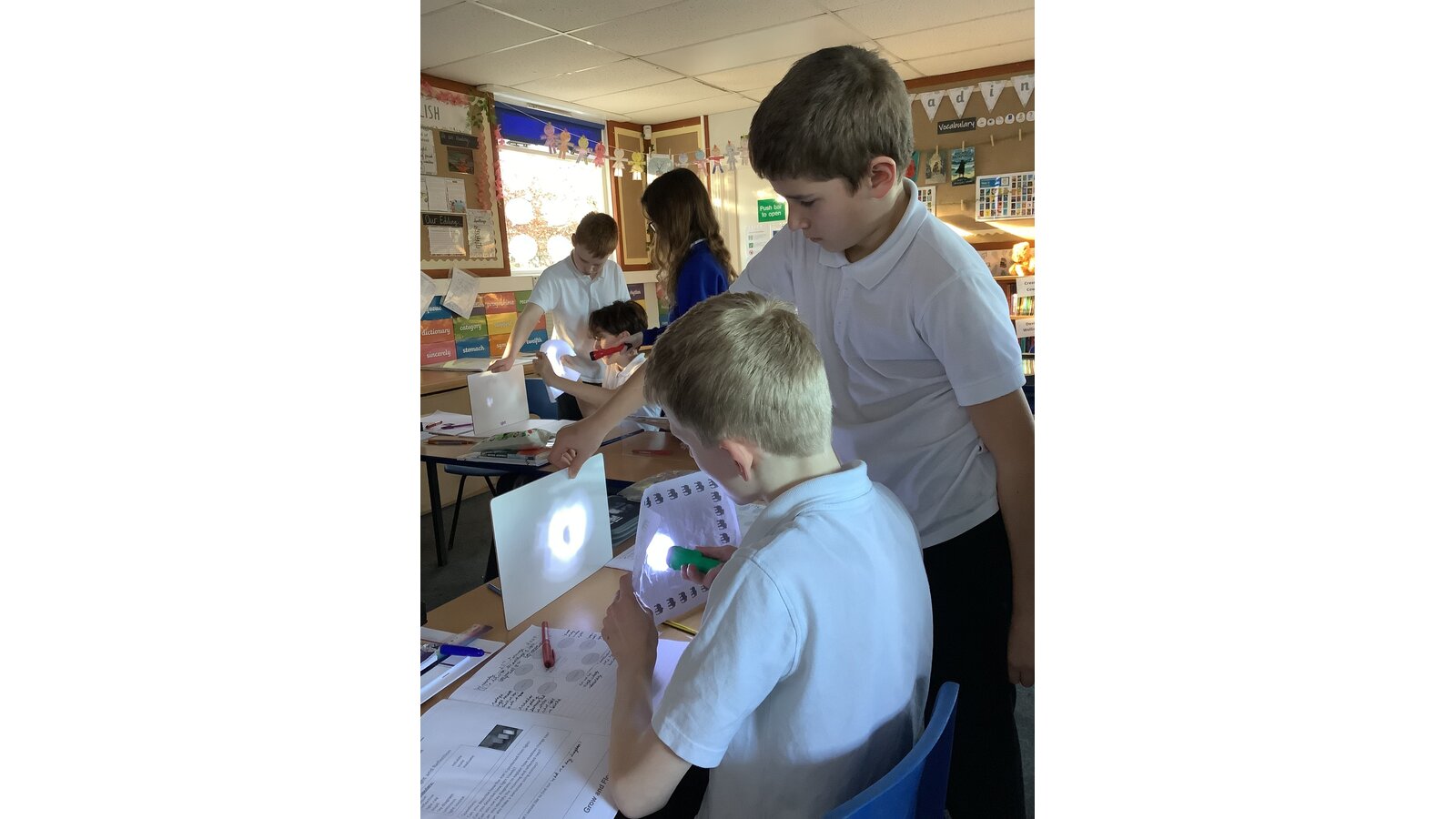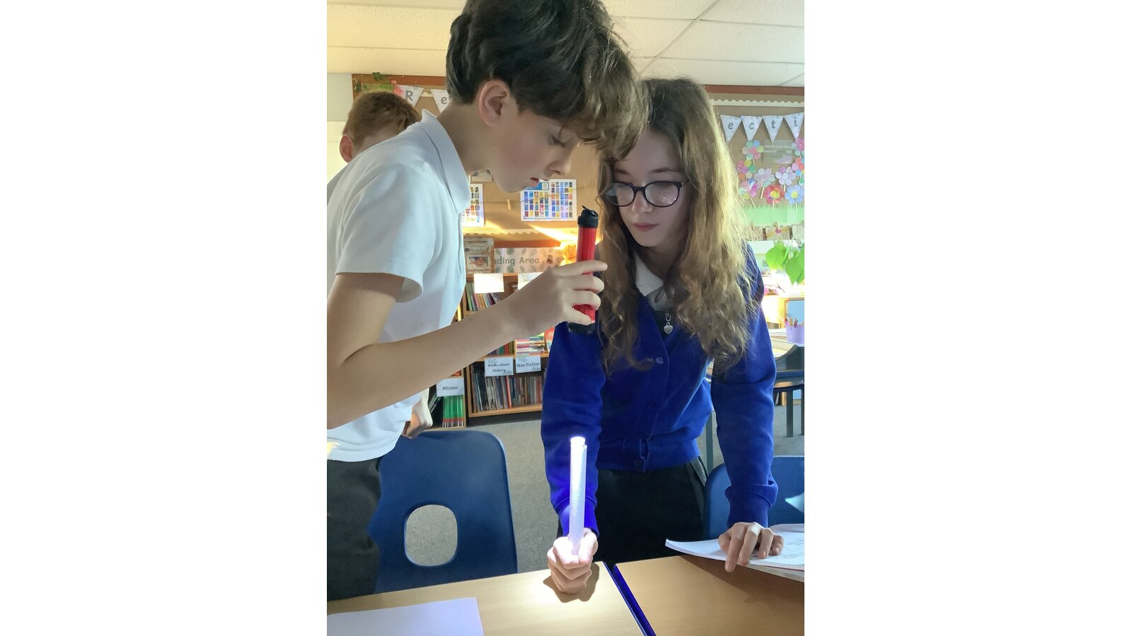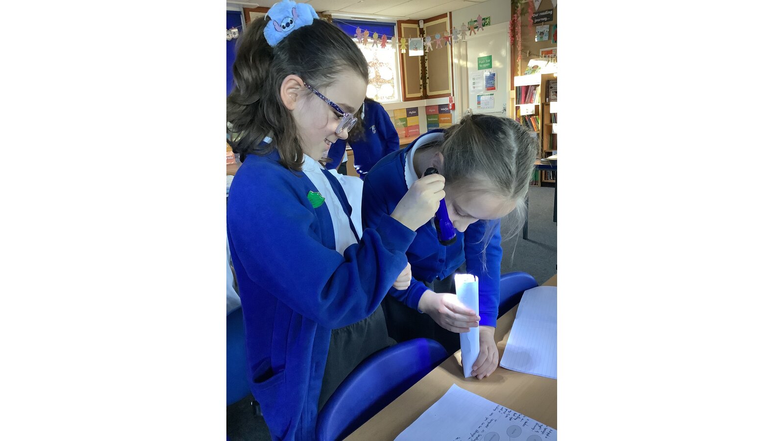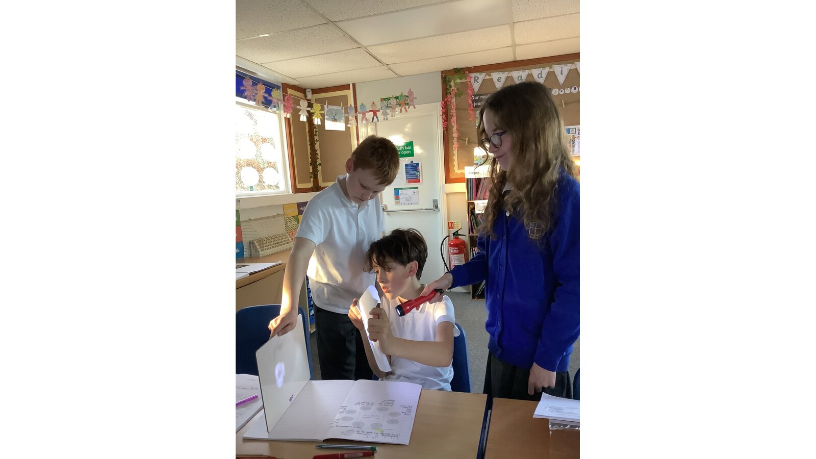 In Science this week, Class Three compared light sources, made observations and used evidence to form conclusions. We learned that a light source is something that gives out light and named natural and artificial sources of light, noting similarities and differences. The children worked collaboratively to investigate if light can bend and from their observations, concluded that light travels in straight lines!