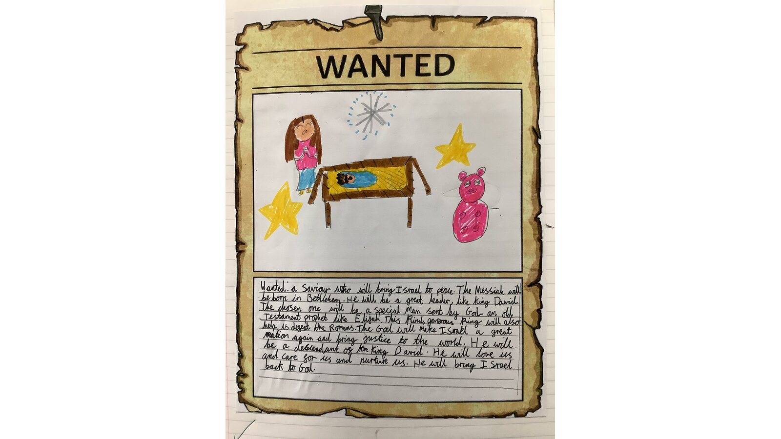 Oak Class learned what incarnation means and explored the prophecies, which set out the details of what the Jewish people were expecting of their saviour. The children then used the clues to create their own wanted posters for the Messiah! We concluded the lesson by following our windows, mirrors and doors approach to spiritual development; the children had to think about problems that our current world is facing and reflect on the kind of saviour we would want to help!