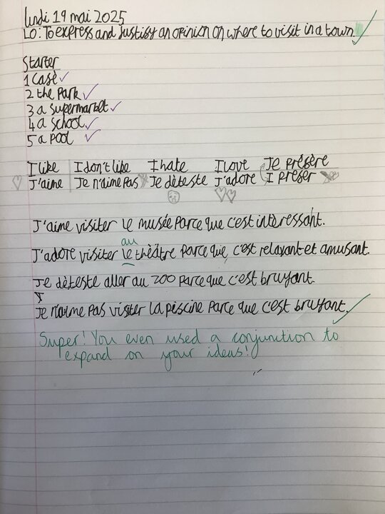 Giving opinions on where to visit in French